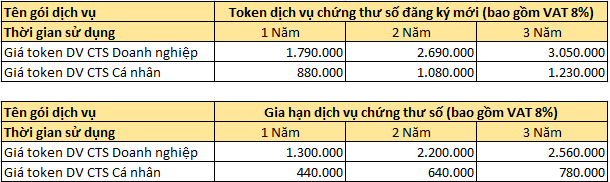 Công ty Cổ phần Chữ ký số Vi Na xin trân trọng thông báo kể từ ngày 03/07/2025 Công ty chúng tôi sẽ áp dụng bảng giá mới như sau: