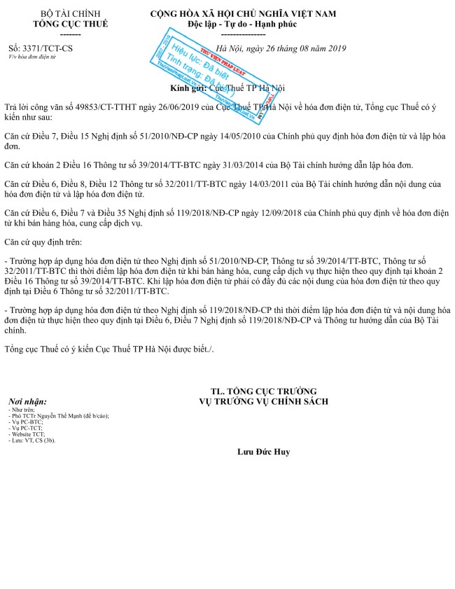 Công văn số 3371/TCT-CS trả lời công văn số 49854/CT-TTHT (nguồn: thuvienphapluat.vn)