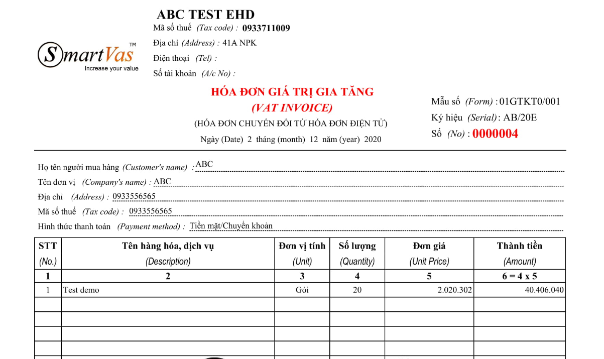 In hóa đơn ra giấy để xem (không có giá trị pháp lý).